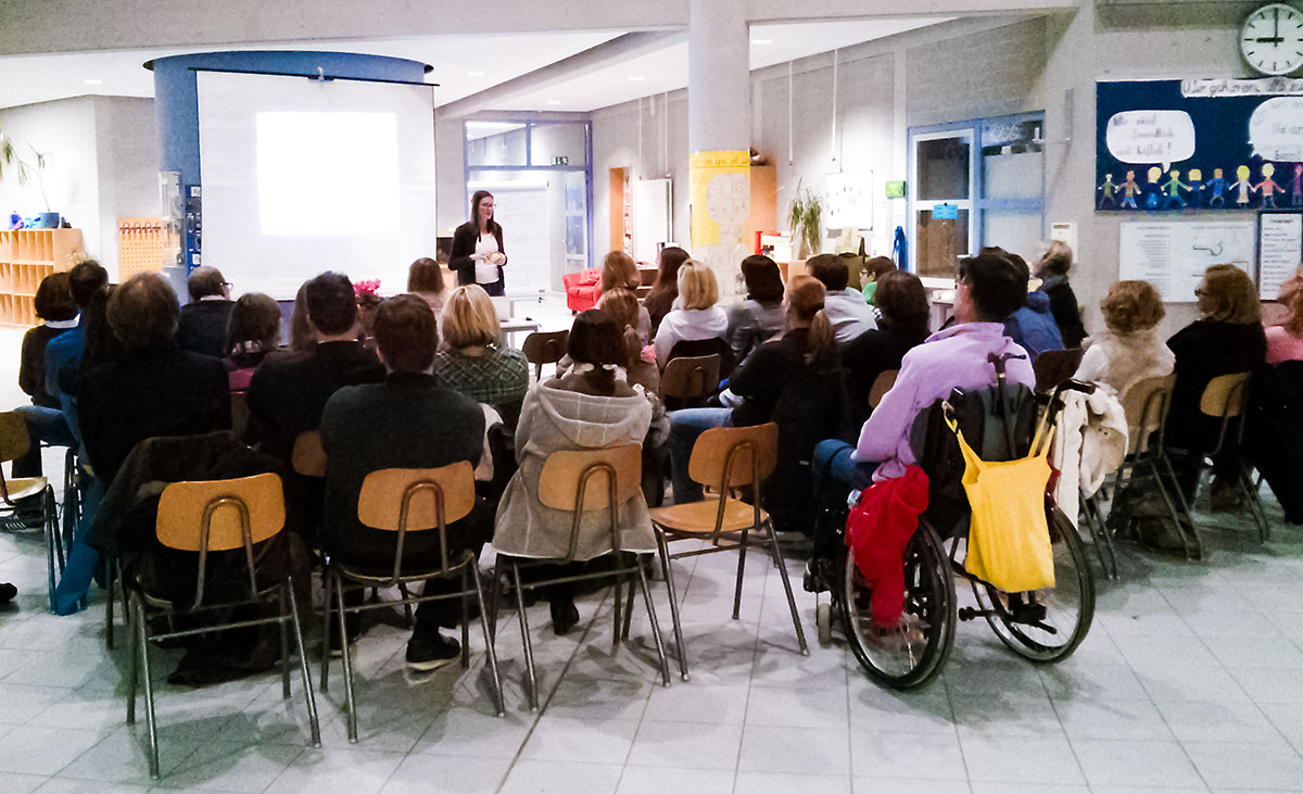 Frau Ackermann referierte unterhaltsam und heiter u.a. über sinnvolle Getränke und Mehltypen. Aktiv durften die Eltern werden als es darum ging, den Zuckergehalt verschiedener Lebensmittel einzuschätzen. Mit überraschenden Ergebnissen!