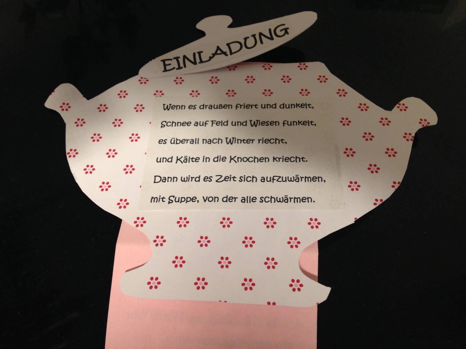 Wintersuppenfest, der liebevoll gestalteten Einladung der Lehrerinnen sind viele Schülerinnen und Schüler sowie ihre Eltern gefolgt. 16 Suppen sind von den Eltern zubereitet worden, von der Afghanischen Linsensuppe bis zur Zucchinisuppe, alles lädt ein zum Probieren. Bevor es losgeht, führen die Kinder noch ein kurzes Stück auf, im dem es auch um eine Suppe geht, und dann beginnt schon der Ansturm aufs Suppenbuffet. Lecker, lecker!