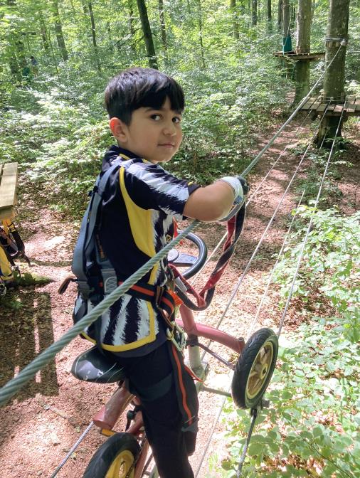 Bei unserem Besuch im Klettergarten warteten verschiedene Herausforderungen auf die Kids, von der Sicherungstechnik, über die Höhe bis hin zu den einzelnen Kletterelementen. Dass sich diese Herausforderungen gemeinsam leichter überwinden lassen war direkt von Beginn an klar. In kleinen Gruppen unterstützen sich die Kinder gegenseitig, sprachen sich Mut zu, halfen, wenn es doch mal schwierig wurde und hatten dabei vor allem eins – jede Menge Spaß.