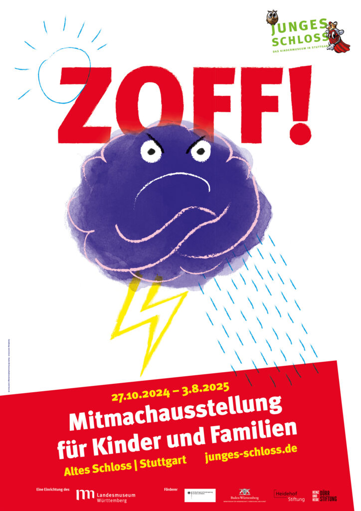 „Streit gehört zum Leben! Auf dem Schulhof, in der Kita oder in der Familie – überall dort, wo Menschen zusammenkommen, können Konflikte entstehen. Und manchmal fliegen dabei die Fetzen und es gibt richtig ZOFF! Genau darum geht es in unserer kommenden Mitmachausstellung: Wir schauen uns an, was uns so richtig in Rage bringt, wie wir am besten damit umgehen und wie wir uns auch wieder vertragen.