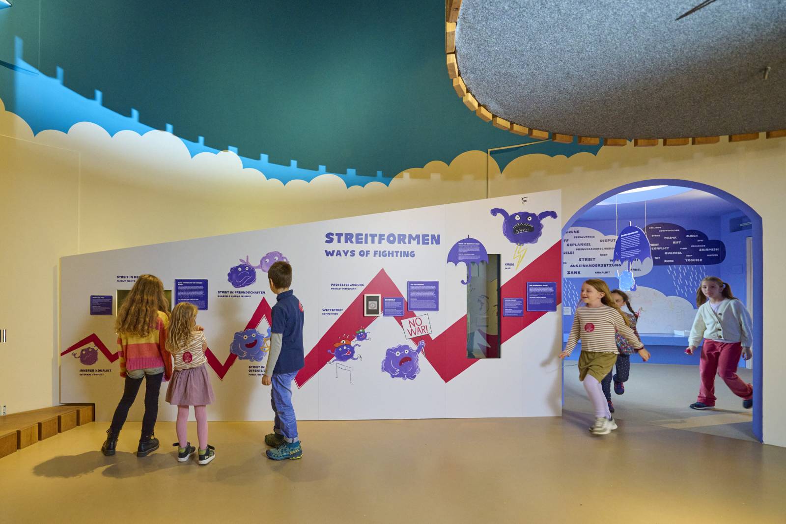 „Streit gehört zum Leben! Auf dem Schulhof, in der Kita oder in der Familie – überall dort, wo Menschen zusammenkommen, können Konflikte entstehen. Und manchmal fliegen dabei die Fetzen und es gibt richtig ZOFF! Genau darum geht es in unserer kommenden Mitmachausstellung: Wir schauen uns an, was uns so richtig in Rage bringt, wie wir am besten damit umgehen und wie wir uns auch wieder vertragen.